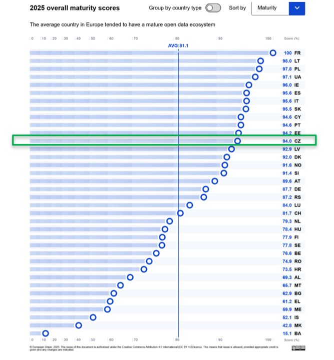 Česká republika patří mezi nejrychleji se zlepšující země v oblasti práce s veřejnými daty. Mezinárodní hodnocení OECD i Evropské komise potvrzují, že otevřená data se v Česku posunula od formální povinnosti k praktickému nástroji digitalizace státu. V OECD OURdata Index 2025 obsadilo Česko 6. místo v konkurenci 42 států, v Open Data Maturity reportu s výsledkem 94 % patří do elitní kategorie Trendsetterů, tedy těch států, které nastavují trendy.